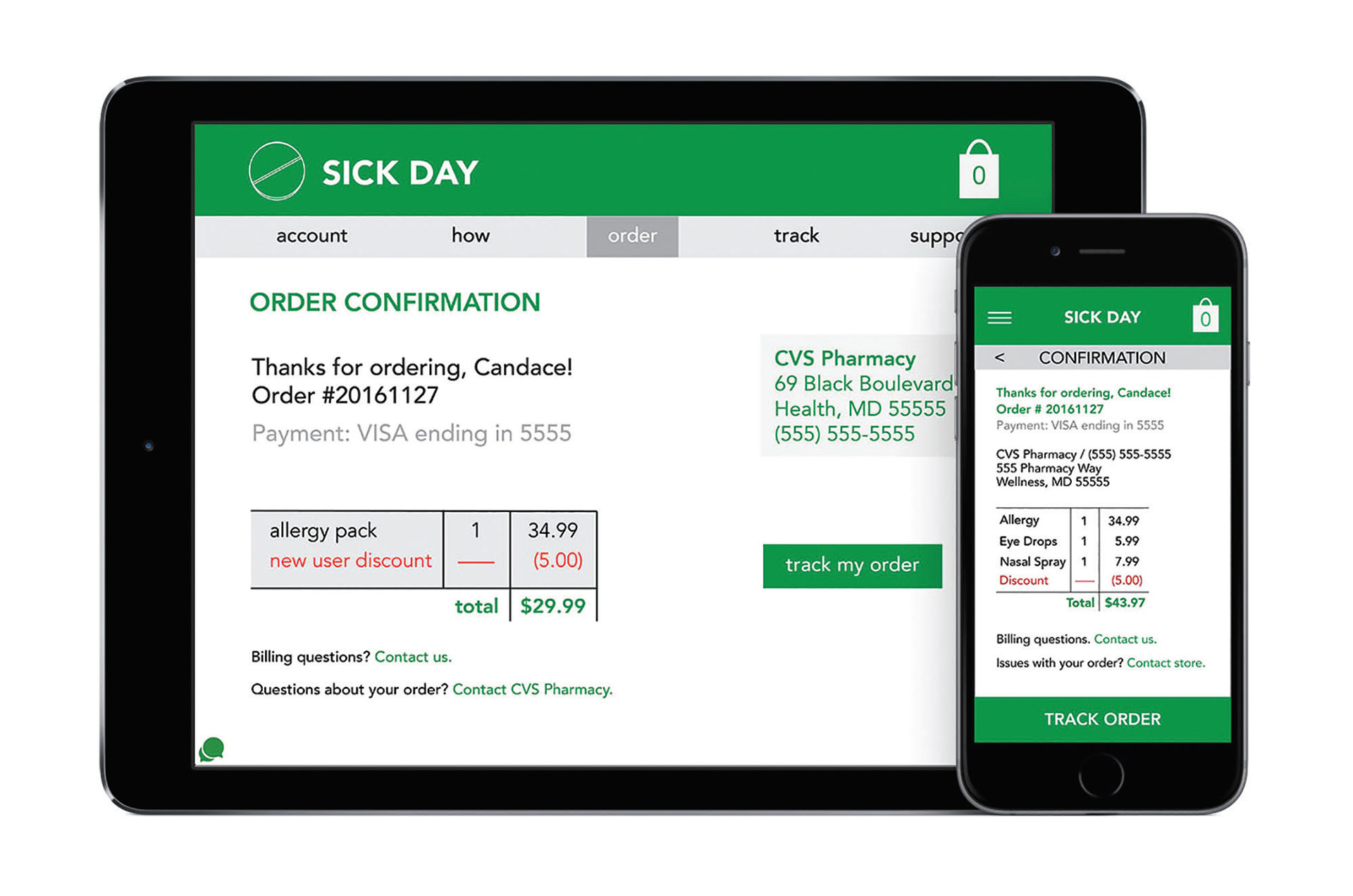 The design problem/prompt was to develop a website and mobile app in tandem for a "made-up" delivery service. The design process included: research, user persona development, hand sketches, computer sketches, wireframe design, user testing of an interactive prototype, and final visual design for a mobile app and website.